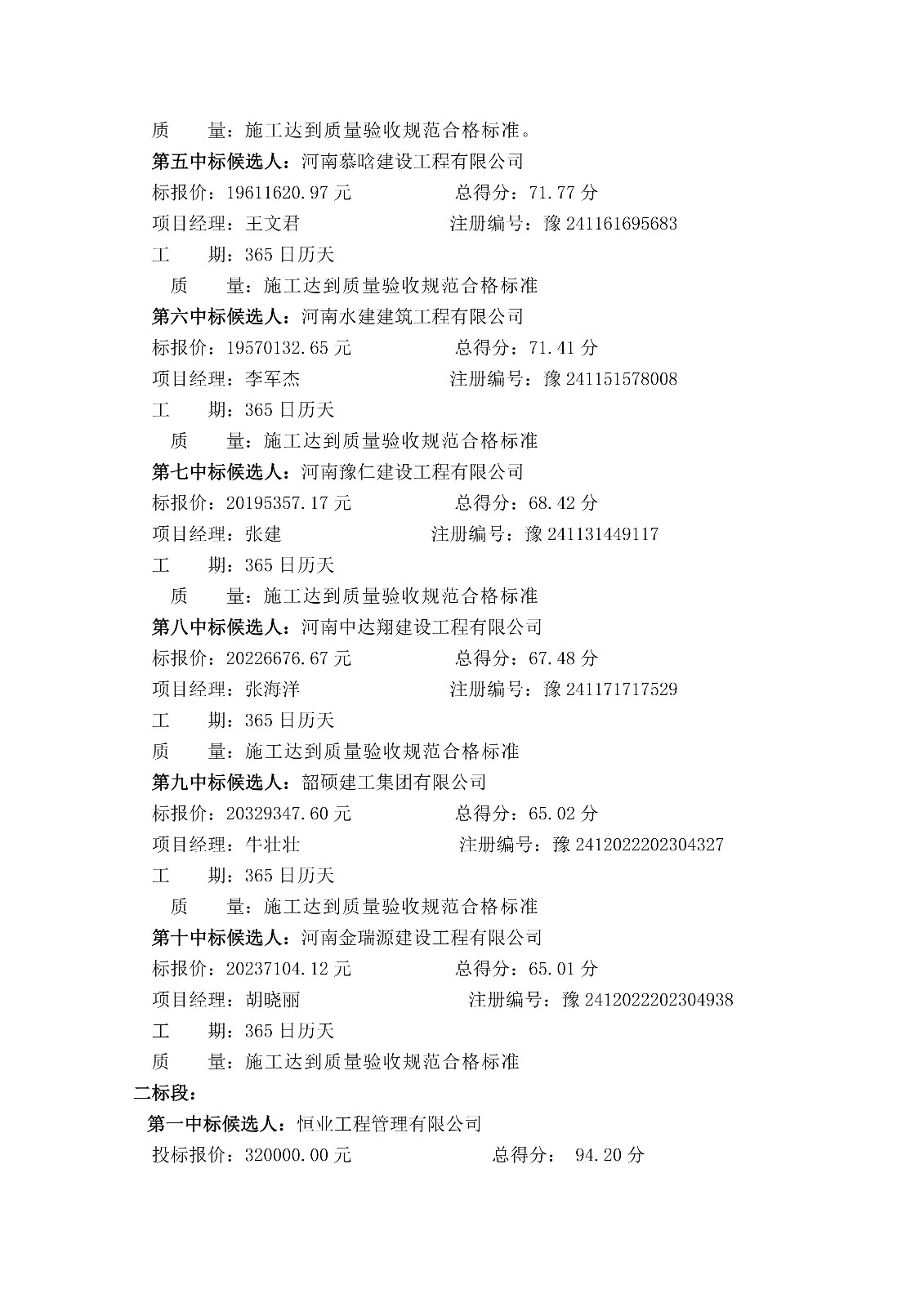 中标候选人公示